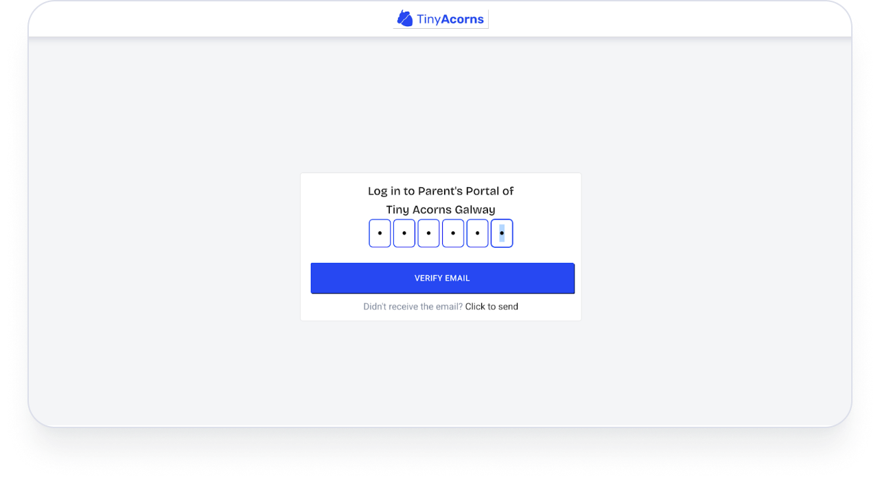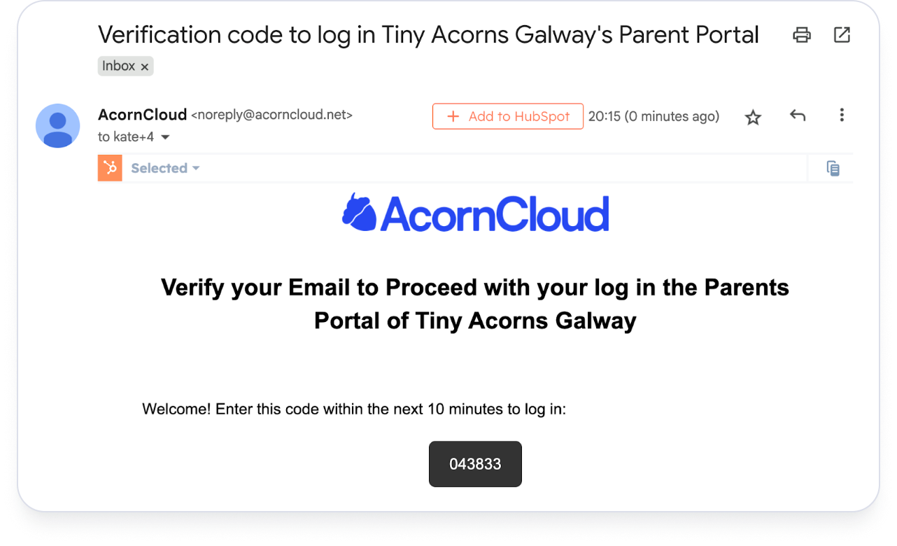 You’ll receive a message from AcornCloud with a one-time 6-digit code. Codes expire after a few minutes.